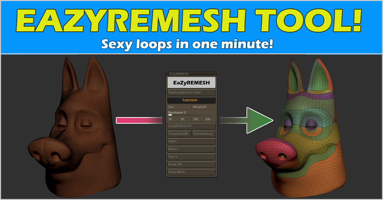 EaZyremesh Tool! A retopology plugin for Zbrush.
